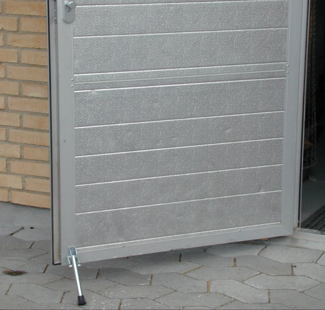 Dørholderen monteres på døren og skal blot vippes ned, når døren skal holdes.